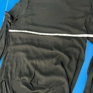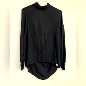Zero visible flaws. Super soft high neck long sleeve. 100% Rayon. True to size. High/low style. Slightly longer in back.