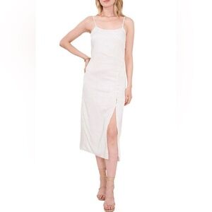 1 State Satin Ivory Midi Slip Dress Front Slit Spaghetti Strap Size 8 Tan Dots