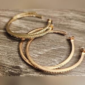 Chic bangle and earring set by Torrid. Features yellow gold and rose gold in color. Perfect for adding sparkle to any outfit. The bracelets measure 3 1/4" across and the earrings measure at 2". There are a total of 7 bracelets and 2 pairs of earrings. This set is in great condition and have never been worn!