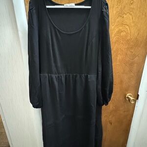 Elegant rust dress with white floral design. Features long sleeves for a sophisticated look. Ideal for any occasion.