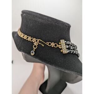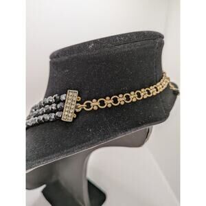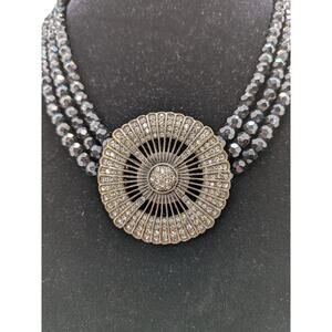 HEIDI DAUS "Belgian Disc" Crystal 3-Row Beaded Necklace Black 20" Adjustable