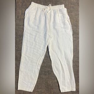 NWOT Saks Fifth Avenue Folio Collection White Pants Size L 55% Linen/45% Silk Elastic Drawstring Waist Relaxed Fit Side Pockets Dry Clean Lightweight Waist 14” Inseam 26.5”