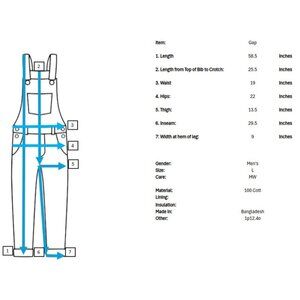 Length from top of bib to crotch: 25.5 in / 65 cm