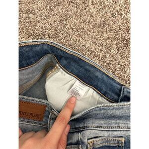 Judy Blue Jeans Raw Hem Cuff Skinny Fit Capri Jeans Distressed Denim Size 1/25
