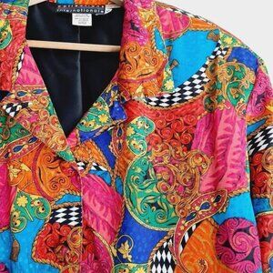 Vintage Silky Satin Retro Colorful Abstract Art Bomber Jacket Sz M
