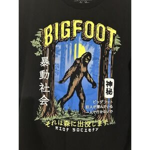 The Bigfoot Riot Society Sasquatch Men's Unisex T-Shirt in size Medium is a black short sleeve shirt with a crew neck and a regular fit. Made of heavyweight cotton material, this shirt features a graphic print of a happy Sasquatch character, making it a funny and unique addition to any wardrobe. It is suitable for all seasons and can be machine washed for easy care. Perfect for fans of the Riot Society brand and those who appreciate a touch of humor in their clothing choices.