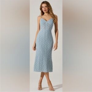 Astr The Label Dusty Blue Lace Midi Dress, new