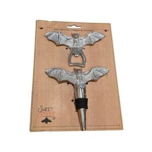 Sweet Street Bat Bottle Opener & Stopper Set Silver Halloween Bar NEW
