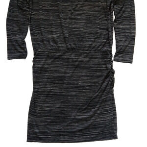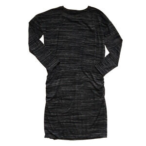 Athleta Tulip Charcoal Dress Size L New Heather Stripe Gray Stretch Ruched