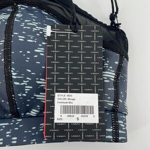Vimmia Fortitude Full Coverage Sports Bra in Mirage Size Small NWT Luxe peformance activewear that takes you everywhere - from the busy activities of daily life to the quietude of the yoga mat, the intensity of the gym, the energy of the studio or wherever you go to reconnect yourself. Features: Compression fabric combines secure coverage and muscle support while providing an elegant fitting shape. The ultimate in 4-way stretch provides incomparable comfort and freedom of movement. Durable construction maintains fit, shape and retains color wash after wash. Roundneck Sleeveless Removable cups Neck hook closure Strappy back 89% Amni Nylon / 11% Spandex Machine wash cold. Tumble dry low. Style# 0923 Made in USA New with tags. Excellent condition. Chest: 28" Tags: sports, bra, compression, athletic, work out, fitness, activewear, yoga.