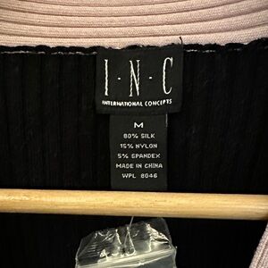 INC Black and Beige V-Neck Ribbed Knit Sweater