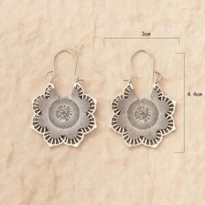Sterling Silver Vintage Ethnic Flower Boho Hoop Earrings