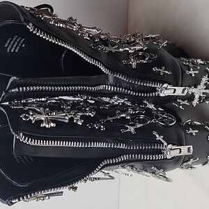 Dolls Kill Widow “Idol Worship” platform boots in classic black goth styling. Features chunky platform sole, lace-up front, and signature charm accents. Bold, dramatic, and perfect for goth, alt, punk, or festival outfits. Women’s Size 8M. Gently used and ready to make a statement.