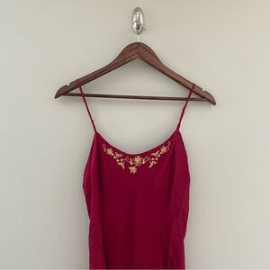 Name: VINTAGE VICTORIA'S SECRET 100% Silk Red Chemise Slip Dress with Gold Floral Embroidery Size Large