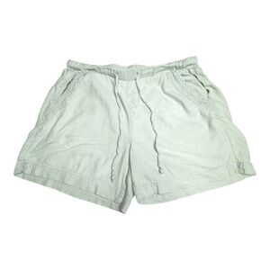 These seafoam green linen shorts offer comfort and style, perfect for casual outings. Featuring an elastic waistband with a drawstring, they provide easy wear and a relaxed fit. Ideal for warm weather, these shorts come with convenient side pockets.