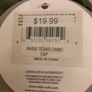 Stylish Robin Ruth hat with Texas embroidery. Camouflage pattern. Perfect for casual wear.