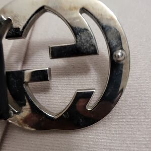 Gucci Black Leather Belt with Silver Buckle. Sizs 38