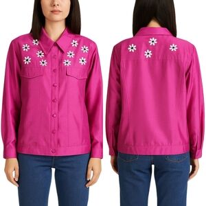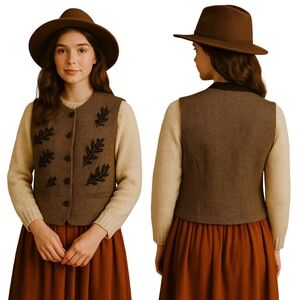 Pre-owned APRIL SKY women’s crushed velvet embroidered babydoll top in brown with lace-style detailing. Flowy fit with button front. Size small.