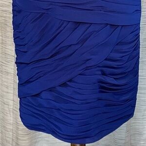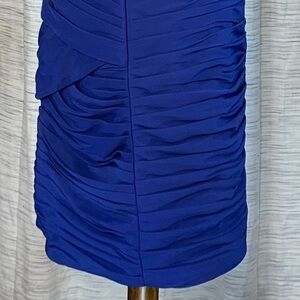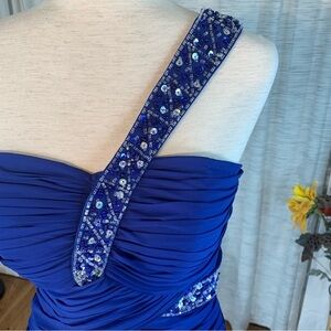 JJ’s House solid blue one shoulder party dress.