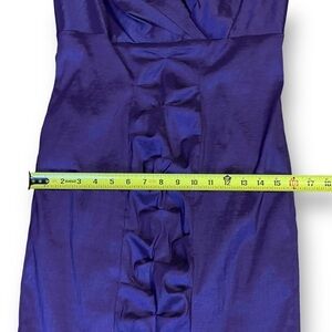 Look gorgeous in this stunningly sophisticated Calvin Klein purple v-neck dress! With body contouring design and 3D detailing, this dress will hug your curves while still allowing room for a comfortable fit.