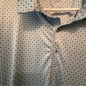 Elevate your style with this classic blue patterned polo shirt. Perfect for any casual occasion.