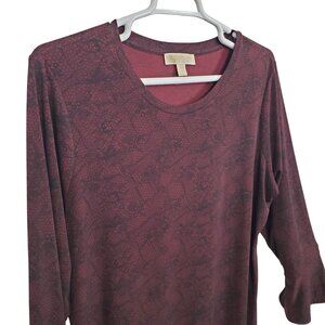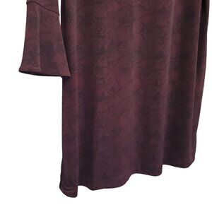 Michael Michael Kors 2X Dress Reptile Print Long Sleeve Bell Cuffs Stretchy Burgundy