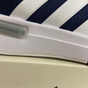 Some glue and/or small mark on one side and shoe bottoms have a little bit of marks almost like someone wore them around the store or these may have been the floor model.