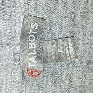Talbots Gray Women's Open Front Hooded Light Weight Cardigan Sweater Size P. Front pockets. Very good pre-owned condition.