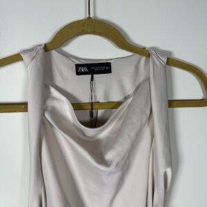 Zara Satin Effect Mini Dress Cream Event Dress Size Medium NWT