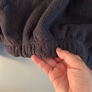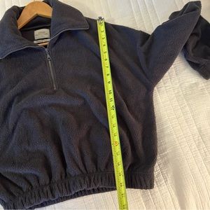 Urban Outfitters Track Meet Half-Zip Fleece Shirt. Size Medium. Good used condition. Elastic at sleeves and hem. Zips to form a high collar. Dark gray color.