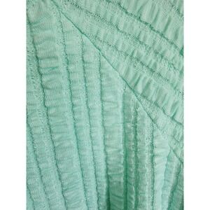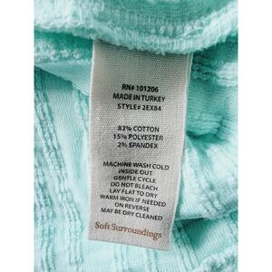 This Soft Surroundings Goldie Tunic in size XL is a stylish top designed for casual wear. The tunic features a crew neck with a pullover closure and long raglan sleeves, making it perfect for all seasons. The aqua color and textured stretch knit fabric with puckered details give off a modern and beachy vibe, ideal for a comfortable and trendy look. The relaxed fit and blend of polyester, spandex, and cotton make this tunic a versatile and cozy addition to any wardrobe.