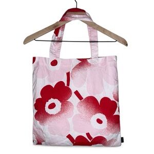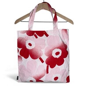 Marimekko Pink Red Floral Cotton Tote Bag 16x16 inch