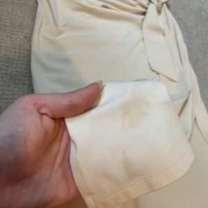New with tags Sezane brand pippa dress in crème shade. **Note flaw: small mark at bottom of hem in front, not really noticeable due to location and faintness (see last photo for reference)**