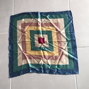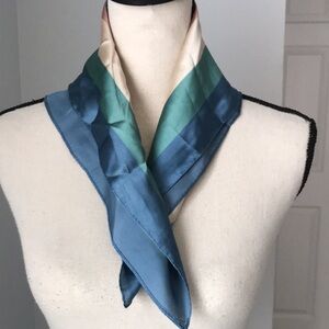 Add a touch of elegance to your outfit with this multicolor silk scarf. Featuring shades of blue, cream, and green, it's perfect for any occasion.