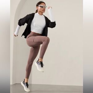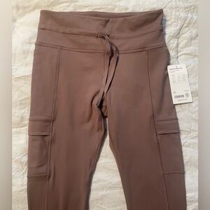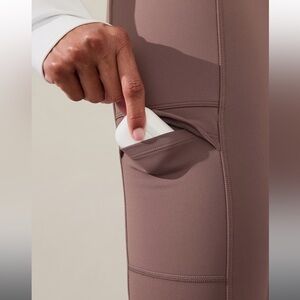 NWT Athleta Rainier Cargo Tight Fleece Lined Leggings in Smoky Rose Pink Sz M