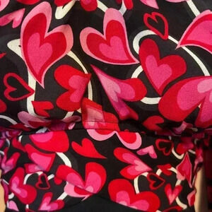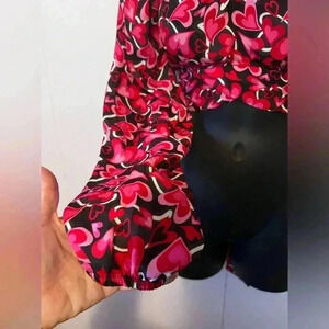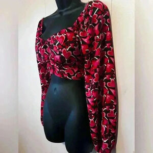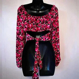 Madden NYC pink and red hearts crop top. Long blouses sleeves and tie back, this cute top would be adorable with a pair or black shorts or slacks! Padded bralette for extra coverage and "oomph"! ๐