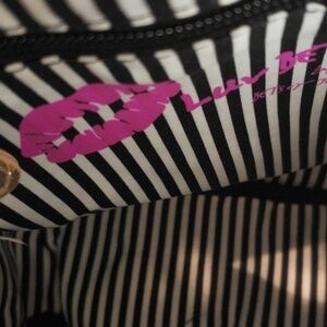 Brand new Kitty backpack from Betsey Johnson. Sparkly embellishments, a gold and cream spotted exterior and a B&W striped interior. Front exterior pocket and a zippered interior pocket for storage. 10.5" high x 8.5" wide and 3" deep. Adjustable back straps.
