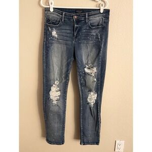 Sundance Black & White Gauze Material Embroidered V Neck Short Sleeve Top XL