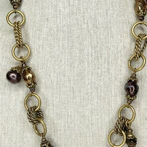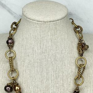 Gorgeous statement piece from Chico's! This mixed media necklace features alternating chain links and beaded elements in a beautiful gold tone finish. Perfect for elevating any outfit with sophisticated style!