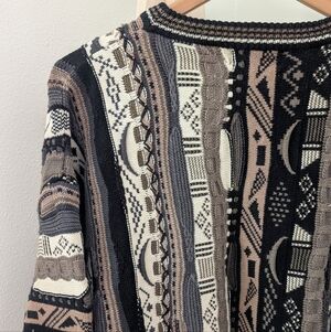 Vintage 90's Coogi Style Abstract Textured Chunky Crewneck Sweater In Black/Gray
