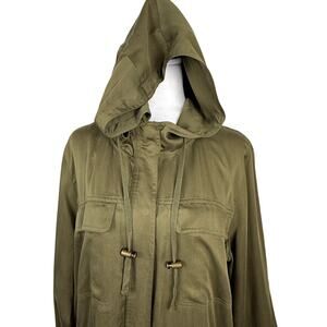 Eileen Fisher Polished Anorak Jacket Hooded Full Zip Olive Womens XL Sustainable
