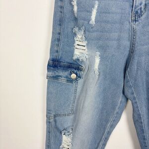 American Bazi Los Angeles Denim Joggers Baggy Distressed Denim Pockets Small