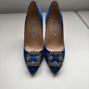Manolo blahnik Blue Satin Embellished Pumps
