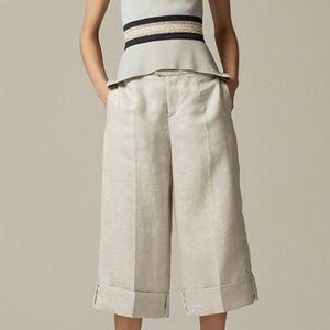 KAELEN Shimmer linen wide leg crop pants. Tan colored wide leg cropped pants with gold shimmer. High rise. Cuffed ankles. Excellent condition! Size 10