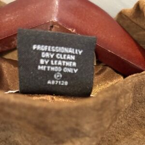 Beautiful Bradley Bayou genuine leather jacket in a soft Brown suede finish. Features a stylish stand-up collar, full button front, and relaxed A-line silhouette. Fully lined in satin-like polyester.