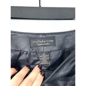Vintage 90s Lambskin Leather skirt womens 4 black Above Knee preppy croft barrow