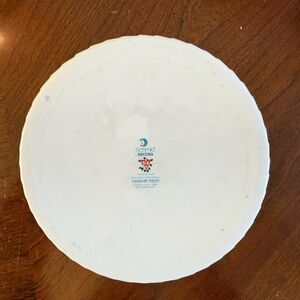 Schmid Bistro fluted quiche bowl featuring floral designs. Accented with red and green colors. 7 3/4 inches wide , and 2 3/4 inches tall. Excellent vintage condition.
