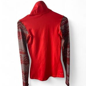 Vibrant red top with stylish detailed sleeves. Perfect for active wear. Nike Pro red and black 1/4 zip top #workout