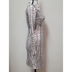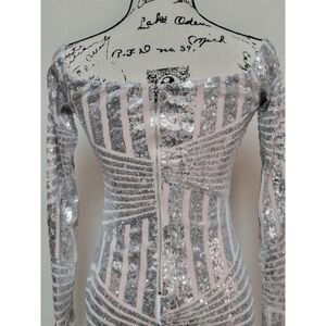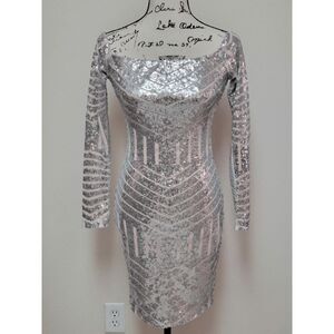 HOT MIAMI STYLES Silver Sequin Off Shoulders Sexy Mini Bodycon Party Dress S