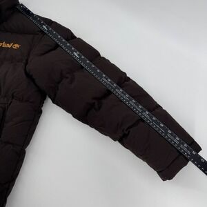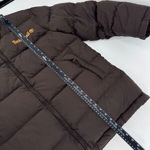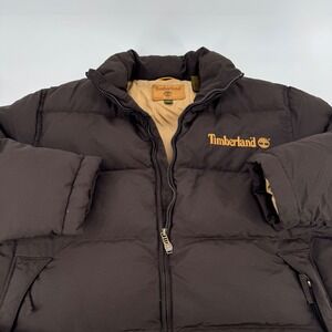 Vintage Timberland Mens Puffer Jacket Brown Duck Down Full Zip Hooded Large